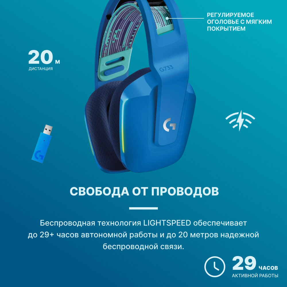 Logitech G733 LIGHTSPEED Игровые наушники, синий