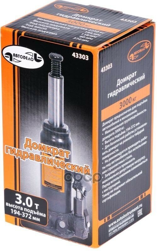 Автодело 43303 Домкрат гидравлический 3 т 194-372 мм АвтоДело