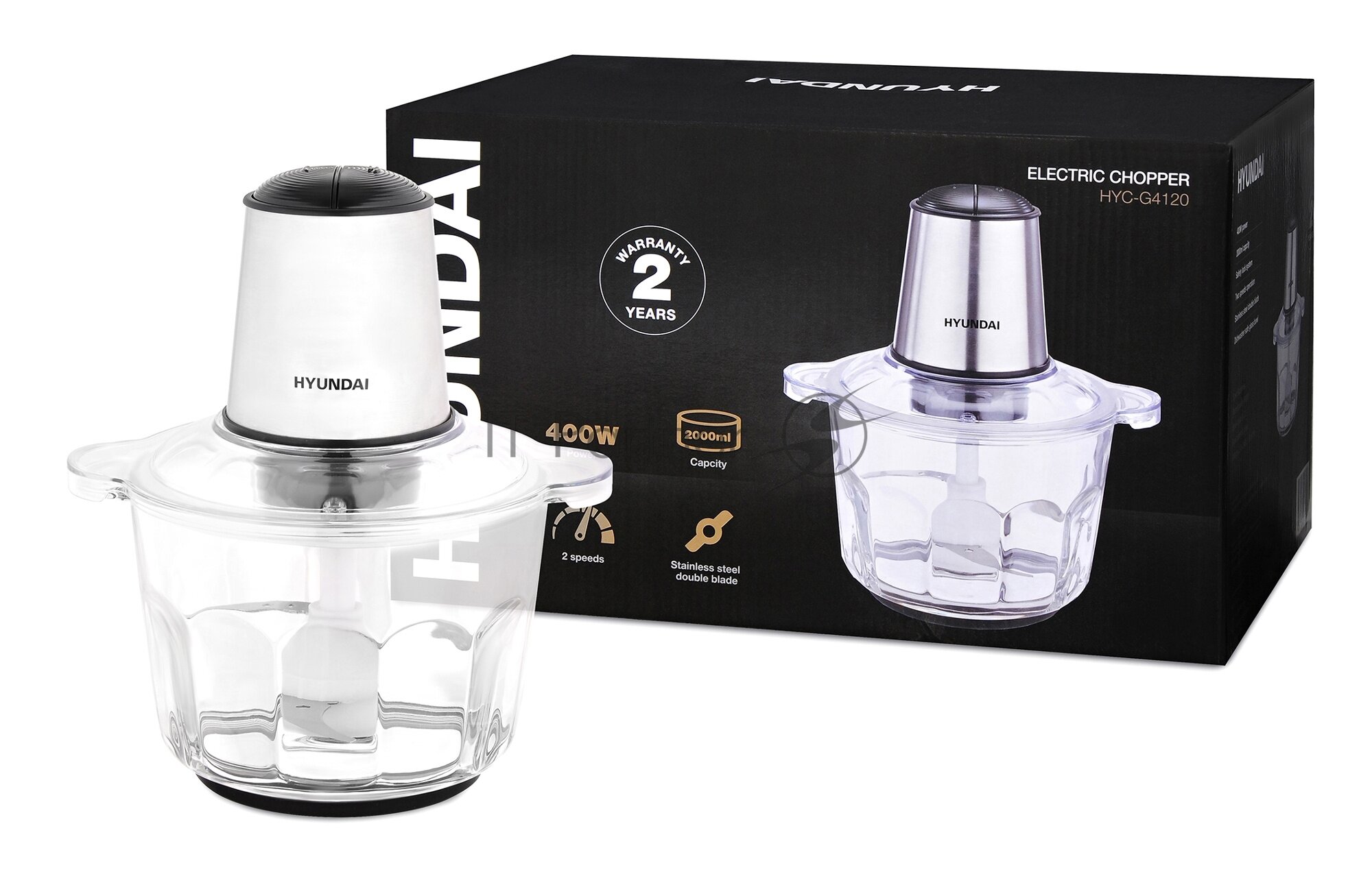 Измельчитель электрический Hyundai HYC-G4120 2л. 400Вт серебристый