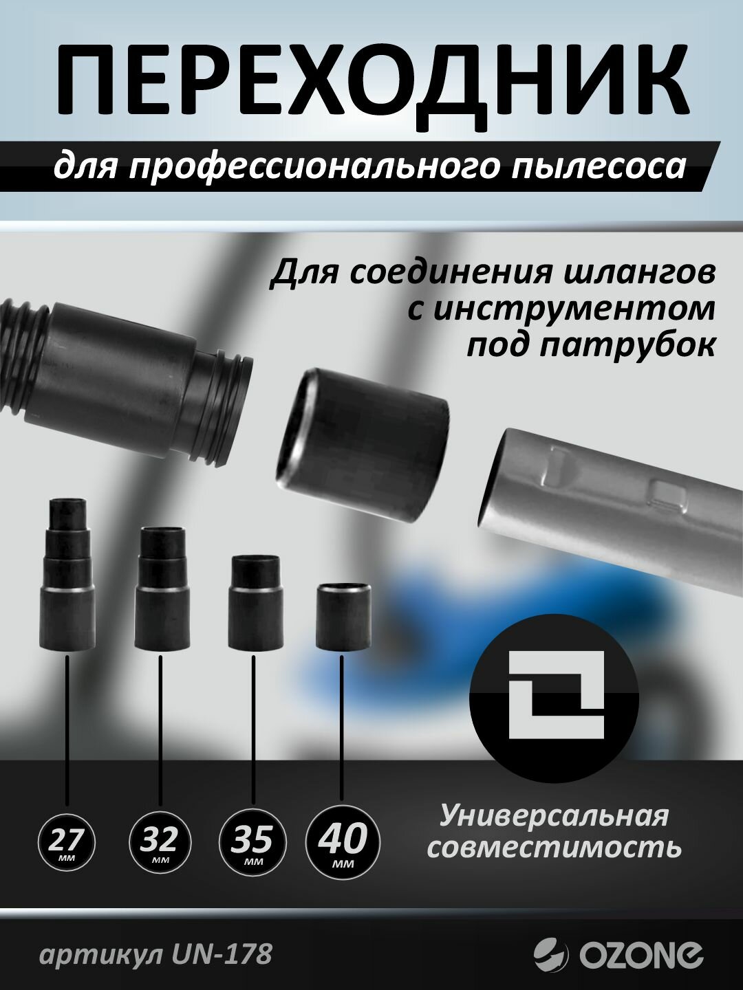 OZONE Переходник для профессионального пылесоса Ozone диаметром 35 мм для соединения шлангов с инструментом под патрубок 27, 32, 35, 40 мм UN-178