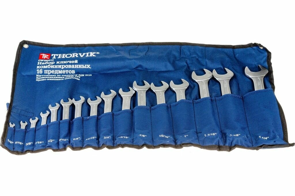 Набор ключей дюймовых комбинированных 16 пр. 1/4" -- 1-1/4" сумка Thorvik THORVIK CWIS0016 | цена за 1 шт