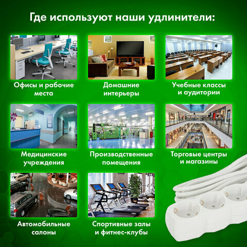 СохранитьКомплект 5 шт, Удлинитель сетевой SONNEN U-133GS, 3 розетки, c заземлением, выключатель, 10 А, 3 м, белый, 511434 интересное: