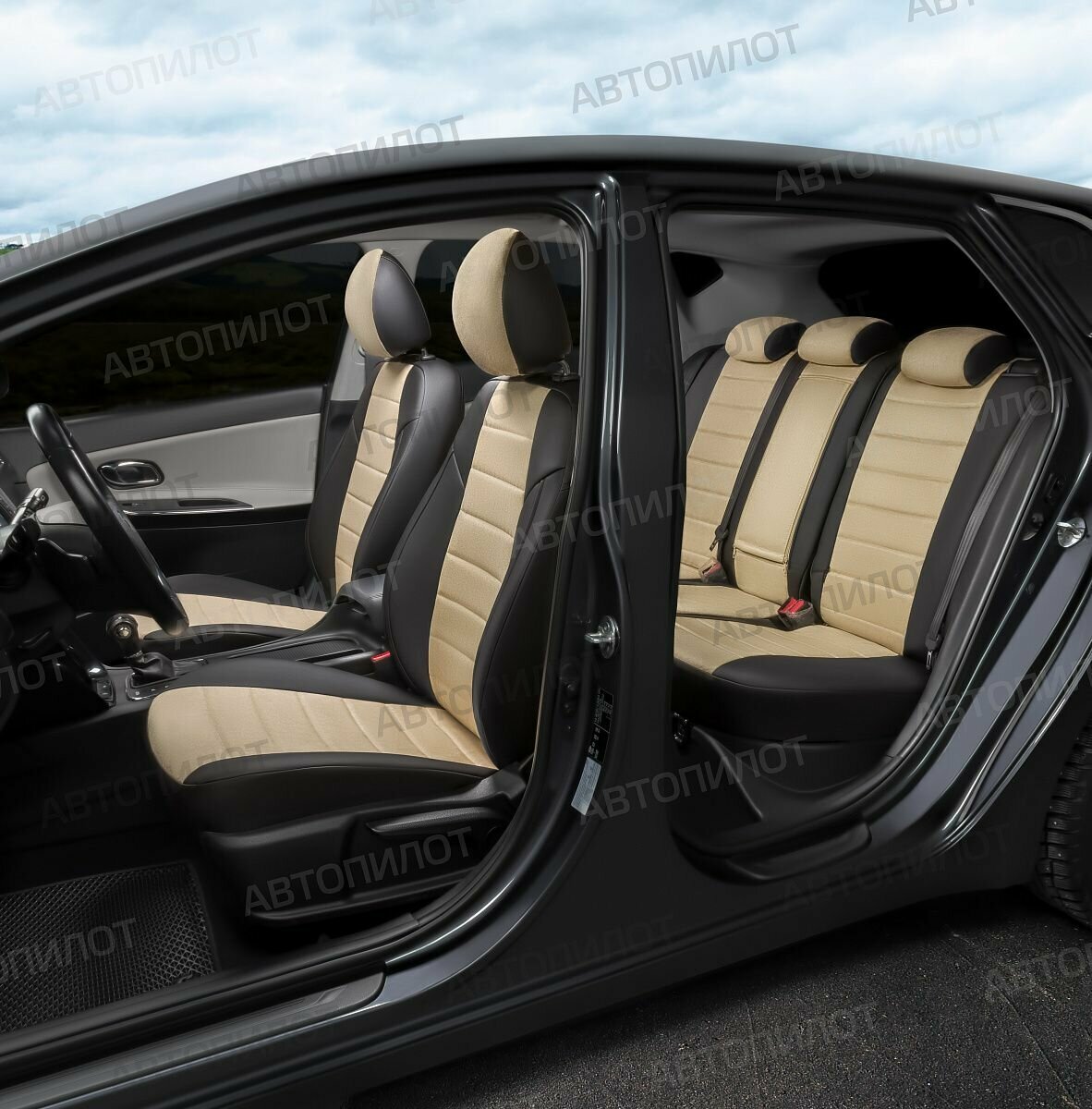 Купить Комплект чехлов Автопилот Алькантара Skoda Octavia A-7 Elegance (с подлокотником) Hb/Wag с 1 Черный + Бежевый