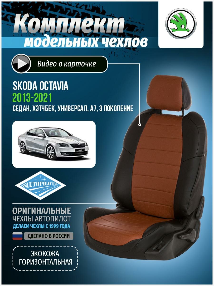 Чехлы для Skoda Octavia 3 A7 2013-2020 Автопилот Коричневый Экокожа sk-ok-a7e-cheko-e