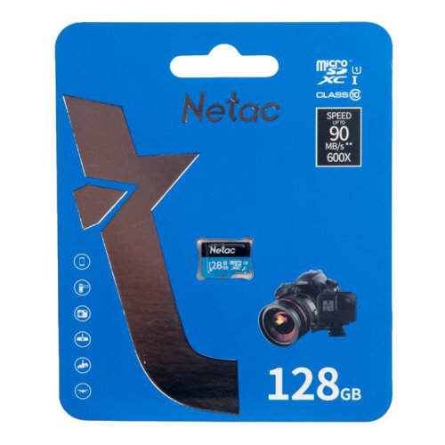 MicroSD 128 Гб Netac P500 Standard UHS-I (90 Mb/s) + SD адаптер (Class 10)