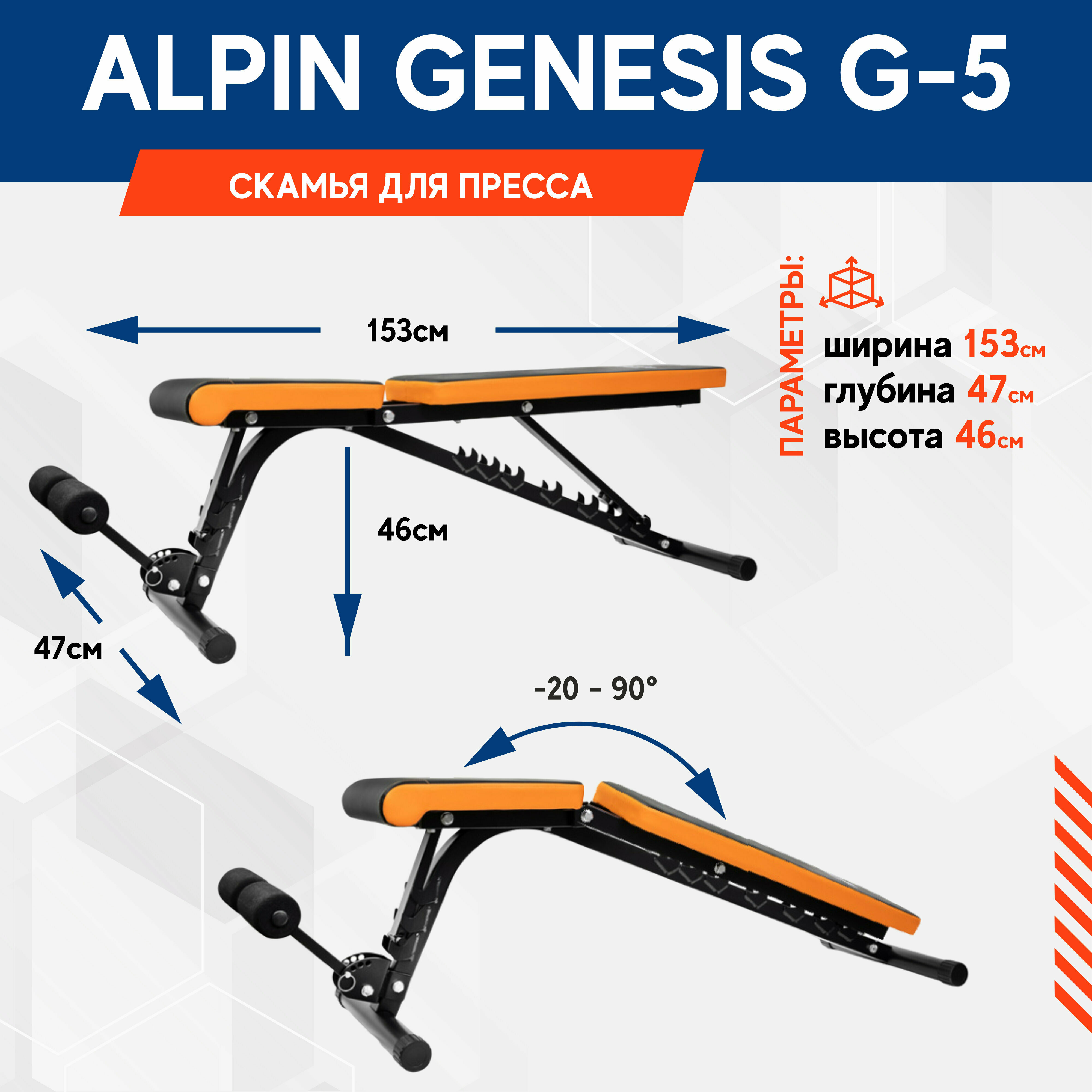 Скамья для жима пресса спортивная силовая складная Alpin Genesis G-5