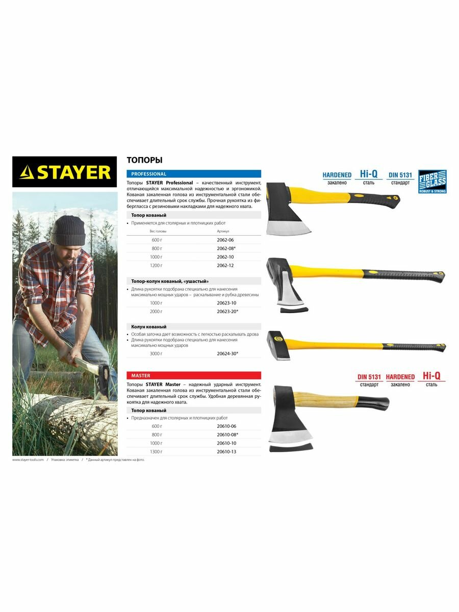Stayer Колун "professional" кованый с двухкомпонентной фиберглассовой рукояткой, 3кг/900мм 20624-30 .