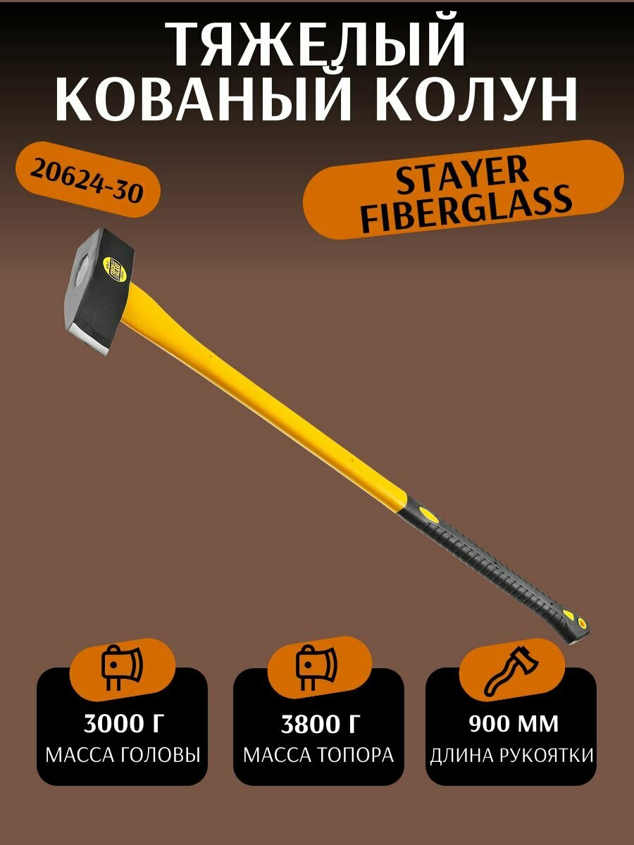 Тяжелый кованый колун STAYER FIBERGLASS, 3000/3800 г, 900 мм