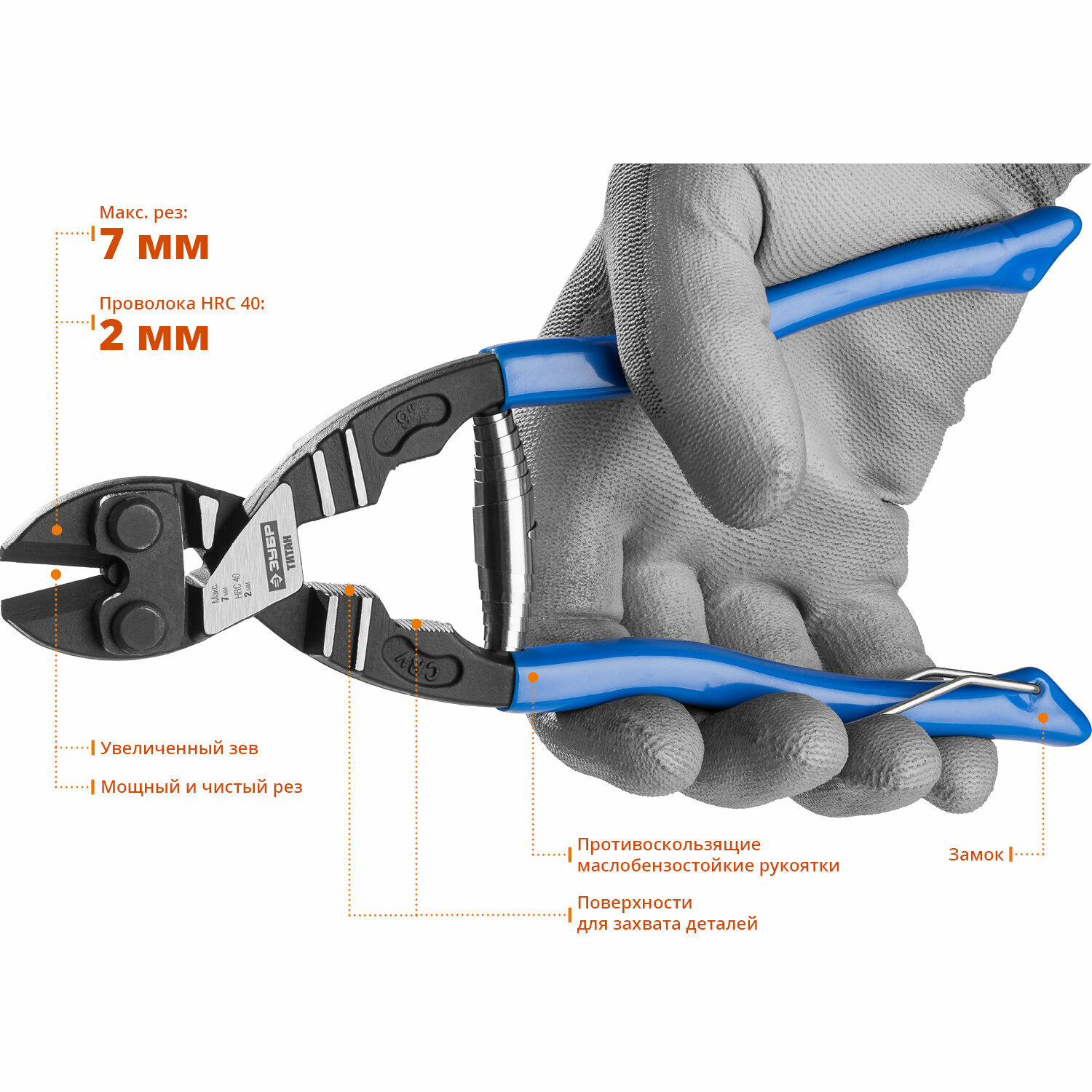 ЗУБР Болторез Титан компактный, Cr-V, max d=7 / HRC 40 d=2, 200 мм, ЗУБР Профессионал