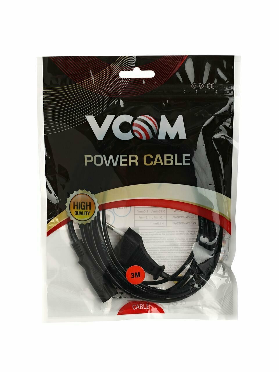 Кабель для аудио-видео техники IEC-320-C7 -- розетка EU, 2-pin , VCOM , 3,0m