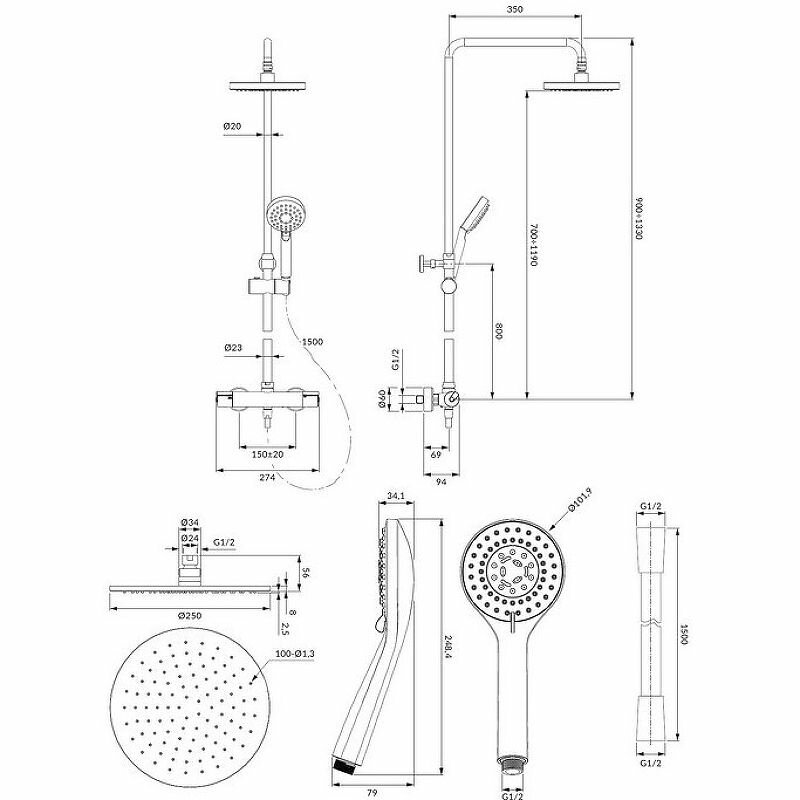 Душевая система 250 мм Omnires Y Y1244LUXLGL