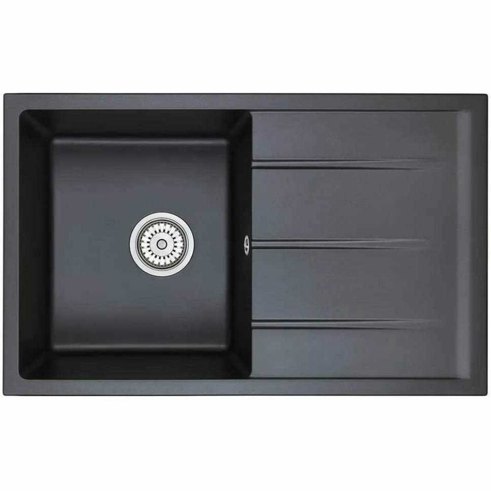 Мойка кухонная Domaci Солерно EMQ-1800.Q 80х50, черная, кварцевая, с крылом, прямоугольная