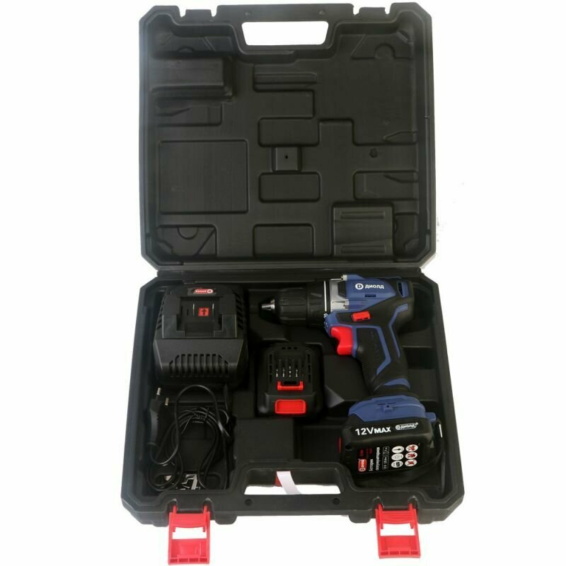 Дрель-шуруповерт аккумуляторная диолд ДЭА-12ЛИ-08, кейс, бесщеточный двигатель, 2 аккум., 2 скор