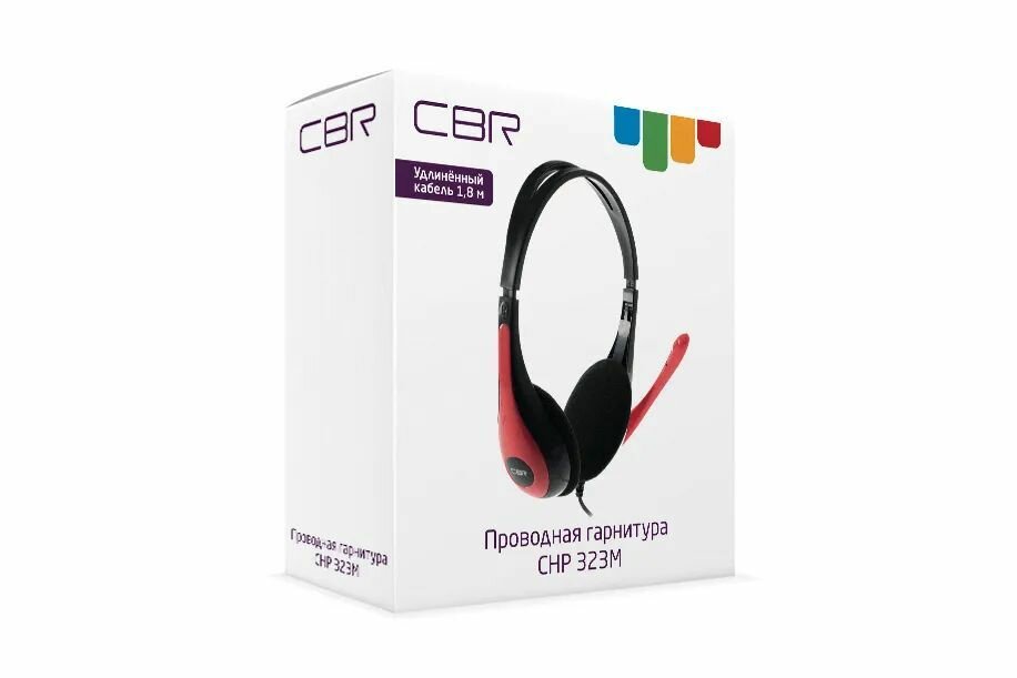 Cbr CHP 323M, Компьютерная гарнитура проводная, микрофон, накладные наушники, 2 x mini-jack 3.5 mm, регулировка оголовья, регулировка громкости, длина кабеля 1,8 м, цвет чёрный-красный