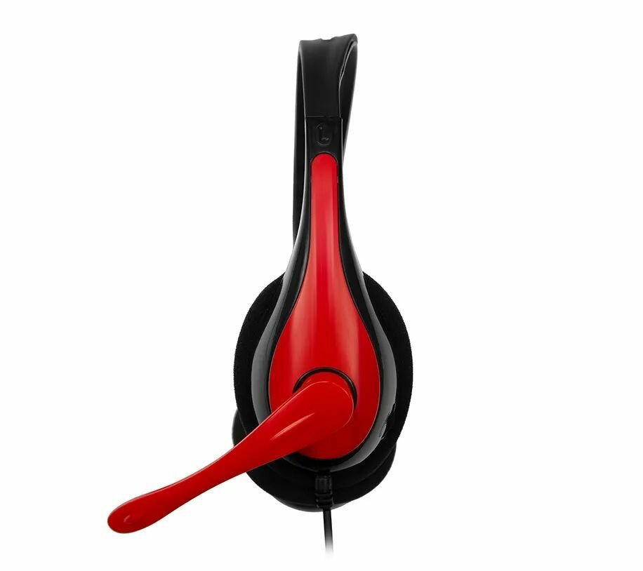 Компьютерная гарнитура CBR CHP 323M, проводная, микрофон, 2 x mini-jack 3.5 mm, регулировка оголовья, громкости, длина кабеля 1,8 м, чёрный-красный