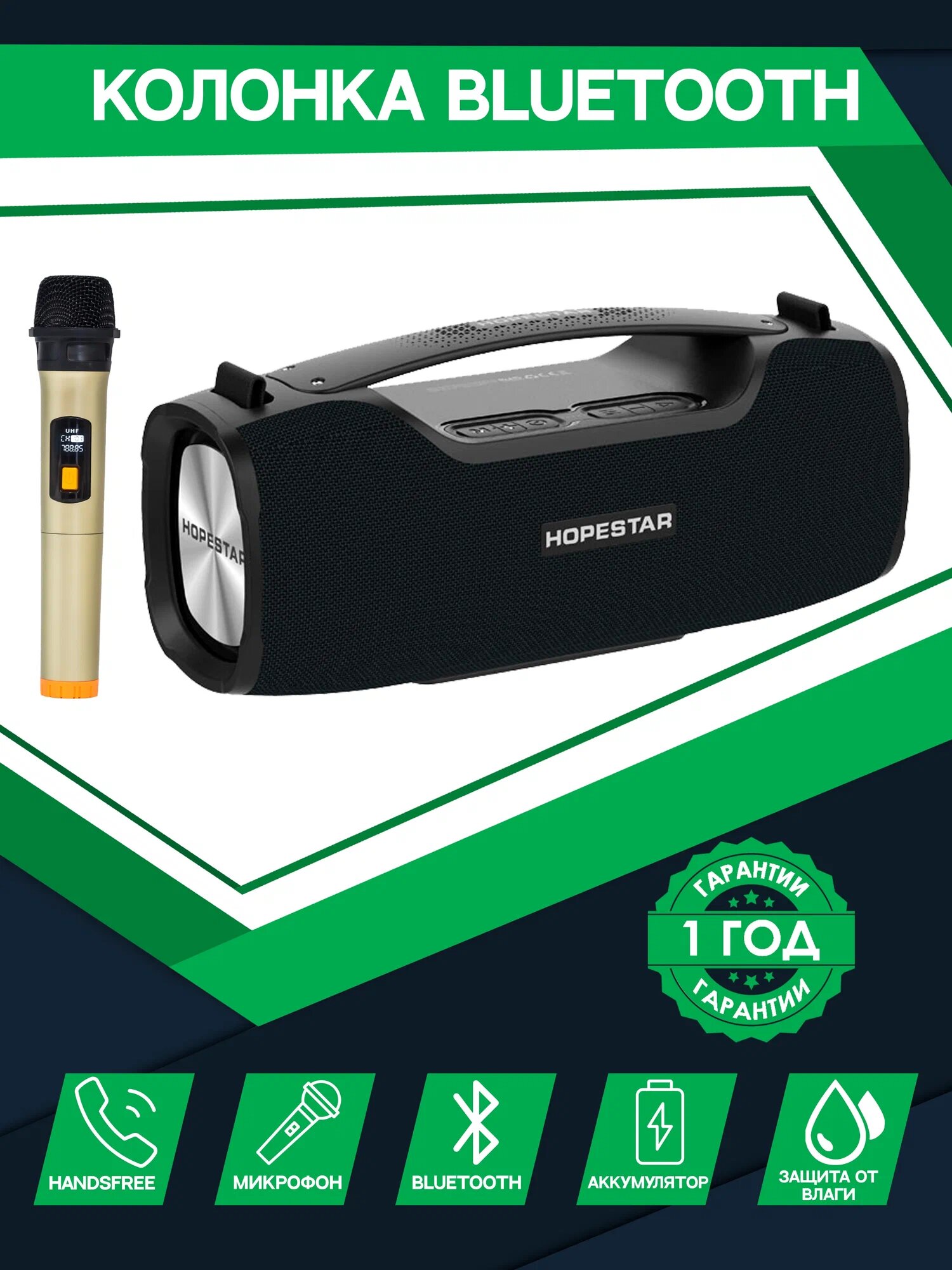 Ниже Вы можете прочитать отзывы на Портативная беспроводная Bluetooth колонка HOPESTAR A6 PRO + микрофон / 55 Вт / Портативная караоке система, камуфляж зеленый, ознакомится с подробными характеристиками, посмотреть интересные обзоры и фотографии на Портативная беспроводная Bluetooth колонка HOPESTAR A6 PRO + микрофон / 55 Вт / Портативная караоке система, камуфляж зеленый.