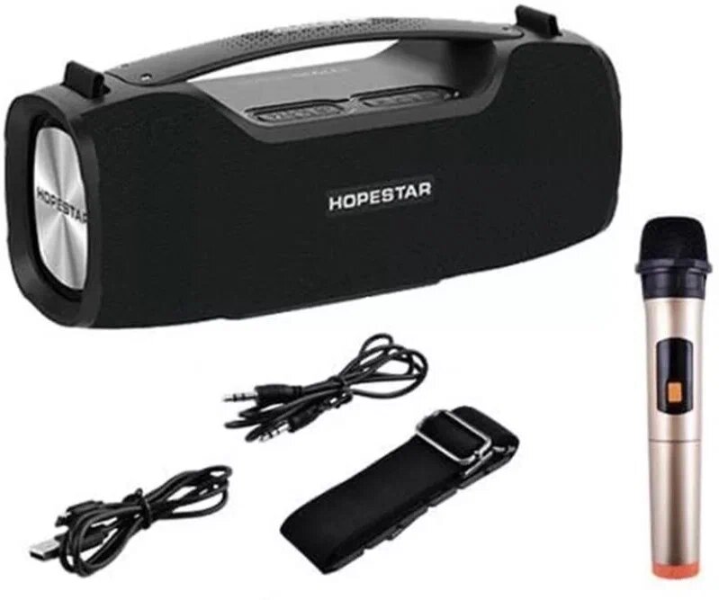 Портативная беспроводная Bluetooth колонка HOPESTAR A6 PRO + микрофон / 55 Вт / Портативная караоке система, черная