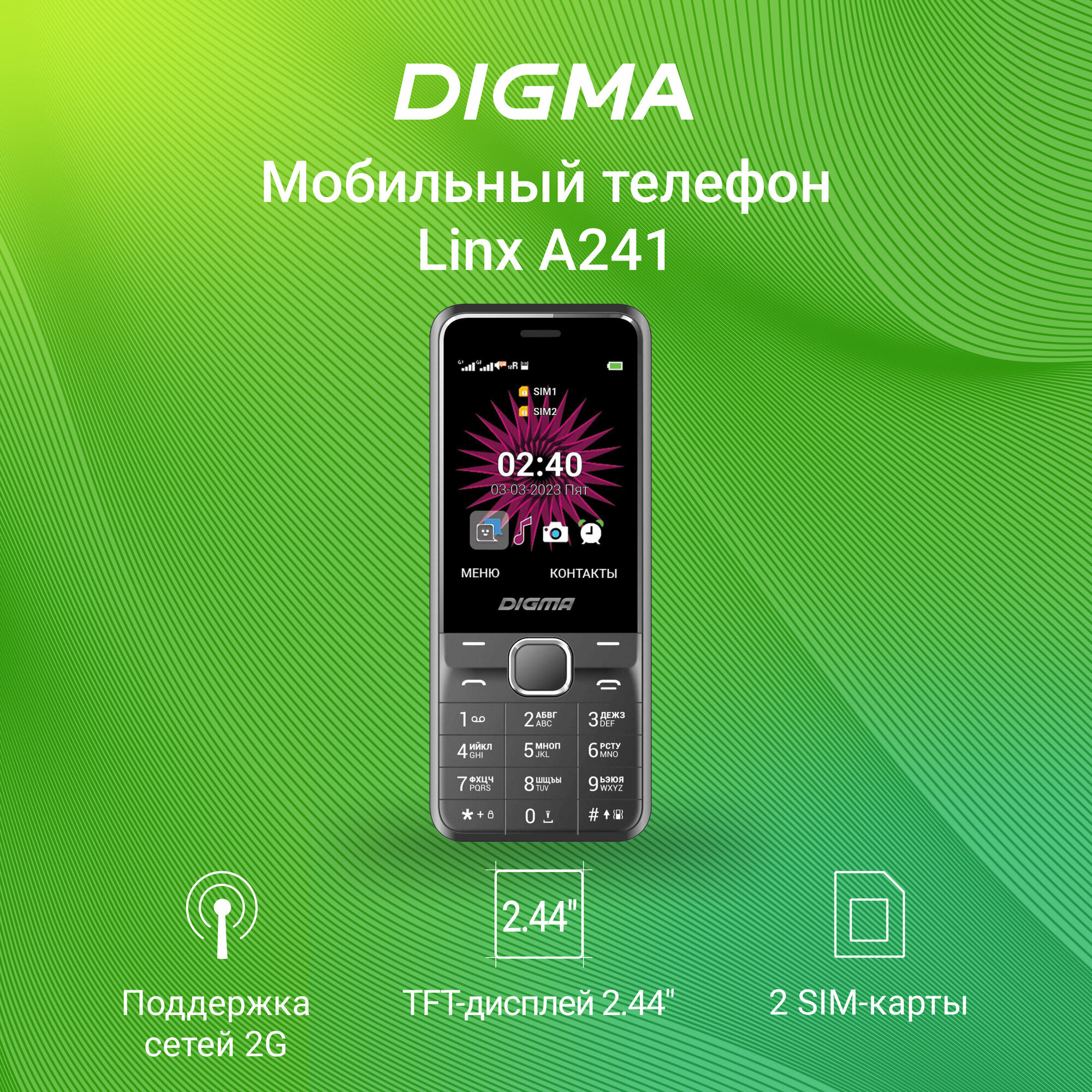 Телефон DIGMA Linx A241 2G, черный