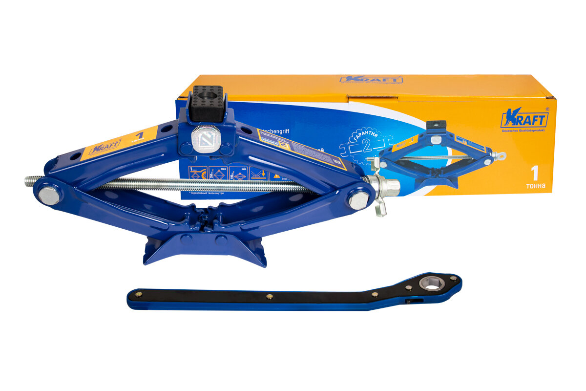 Домкрат ромбический механический KRAFT KT 800070 (1 т) синий