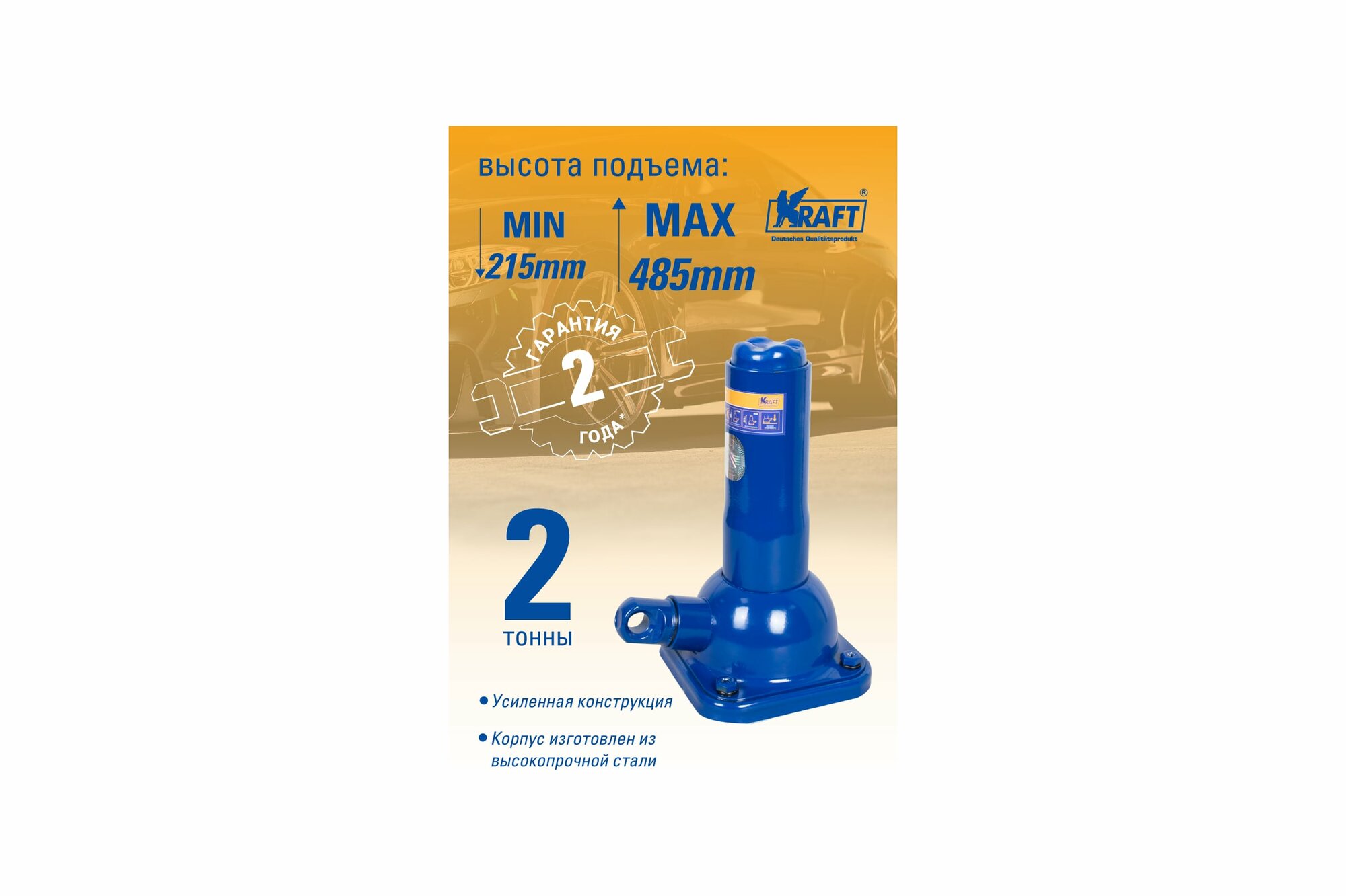 KRAFT KT 800057 Домкрат механический бутылочный 2Т 215-485 мм KRAFT KT 800057 KRAFT KT 800057