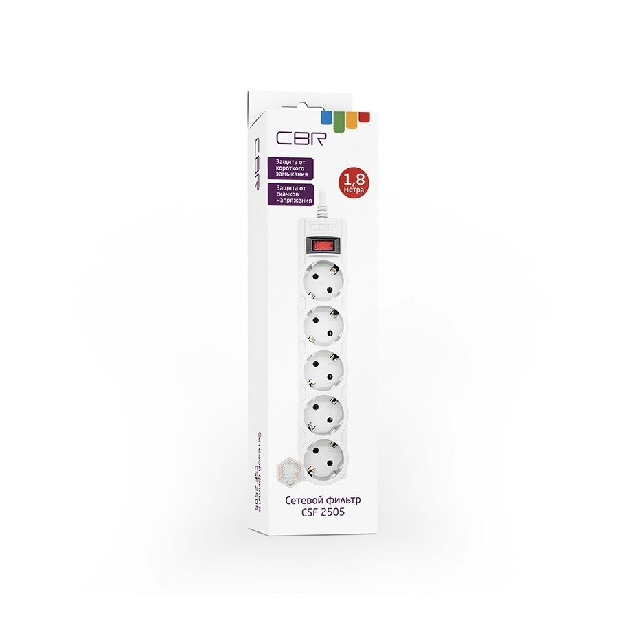 Купить Сетевой фильтр CBR CSF 2505-1.8 White CB 5 евророзеток, длина кабеля 1,8 метра, белый (коробка)