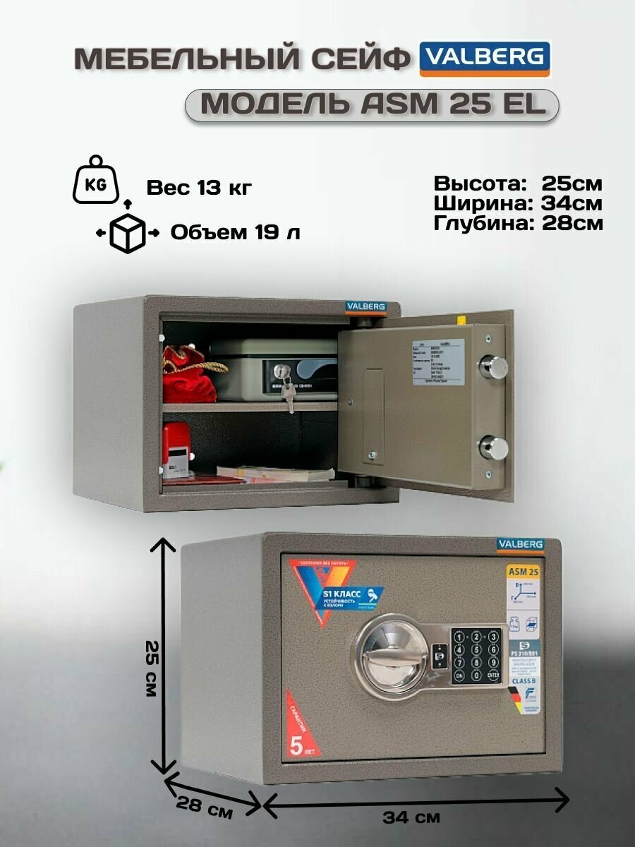 Valberg Сейф ASM 25 EL Внешние габариты ВхШхГ мм: 250х340х280 S10399010940