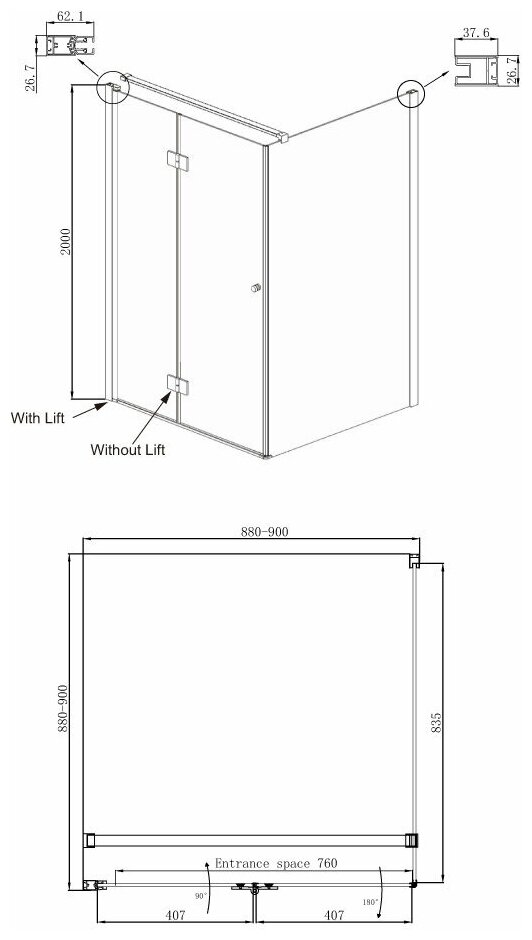 СохранитьДушевой уголок 90х90 см с распашной дверью Ambassador Diamond 12011105L: левостороннее душевое ограждение из стекла 6 мм, профиль хром интересное: