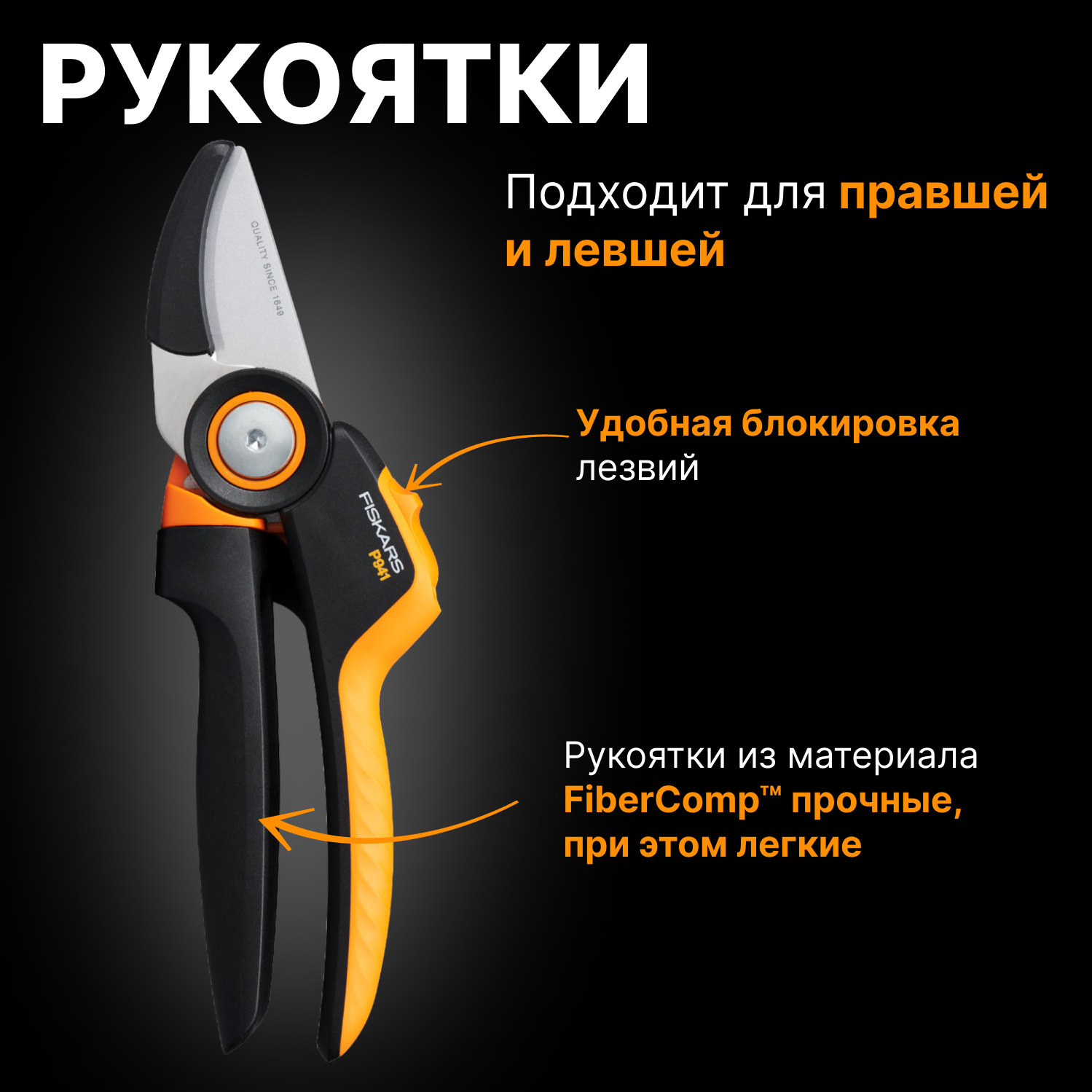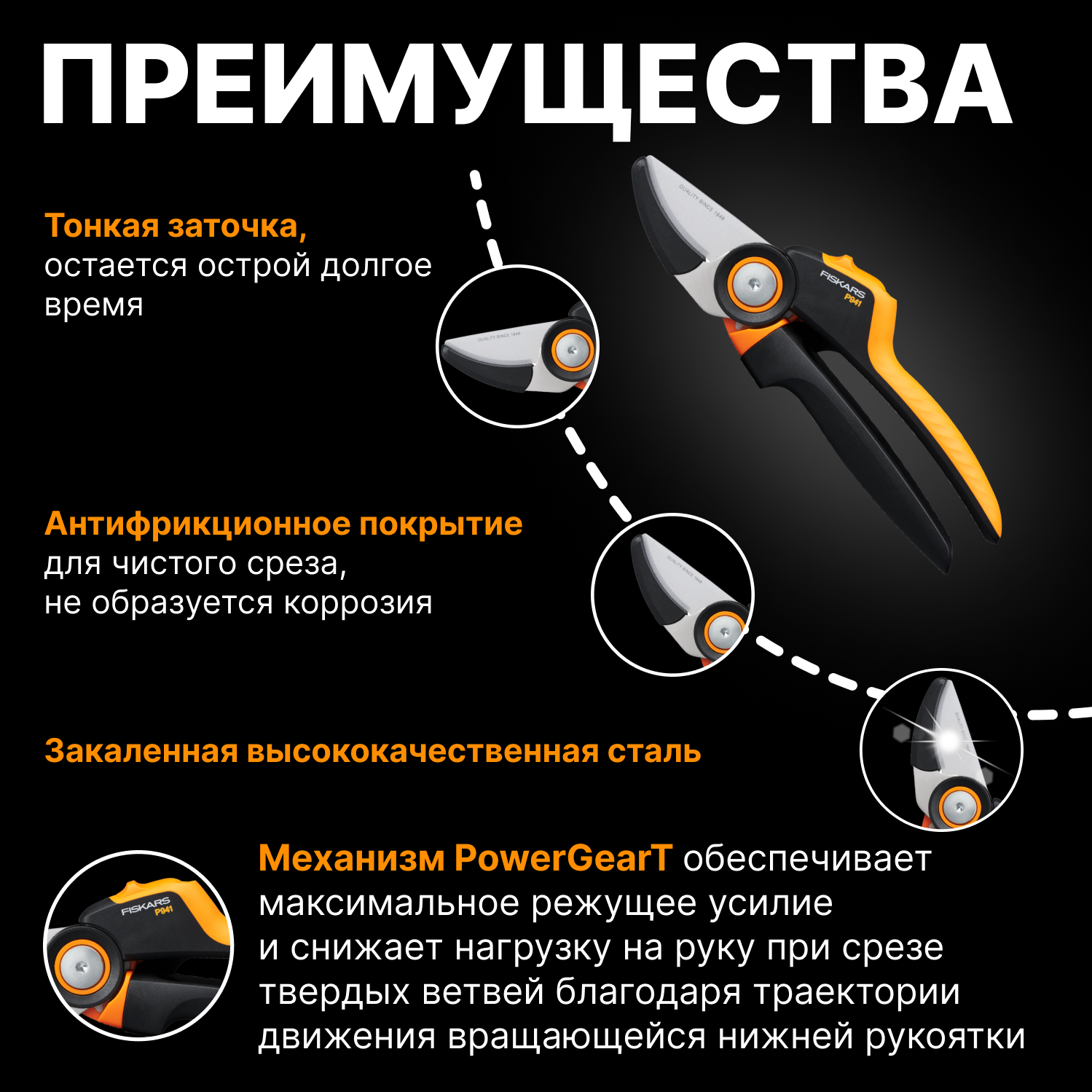 Секатор FISKARS PowerGear L P941 черный/оранжевый