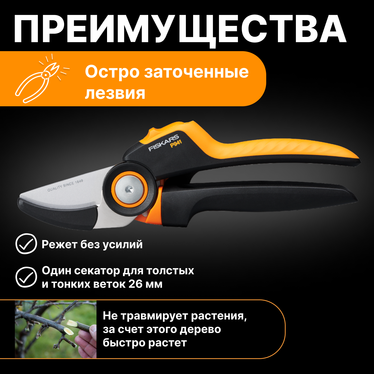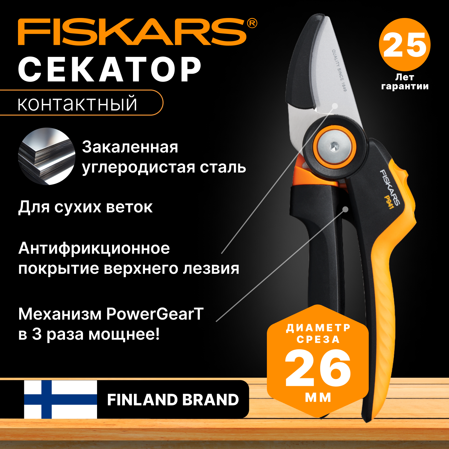Секатор контактный X-series PowerGear L P941 FISKARS (1057174) интересное: