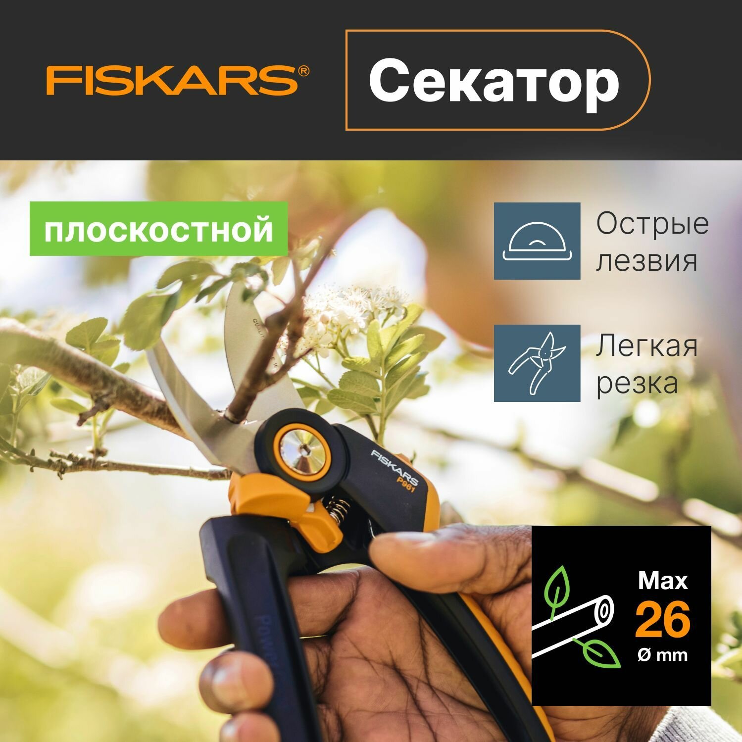 Купить Секатор плоскостной Fiskars PowerGear P961 черный/оранжевый (1057175)
