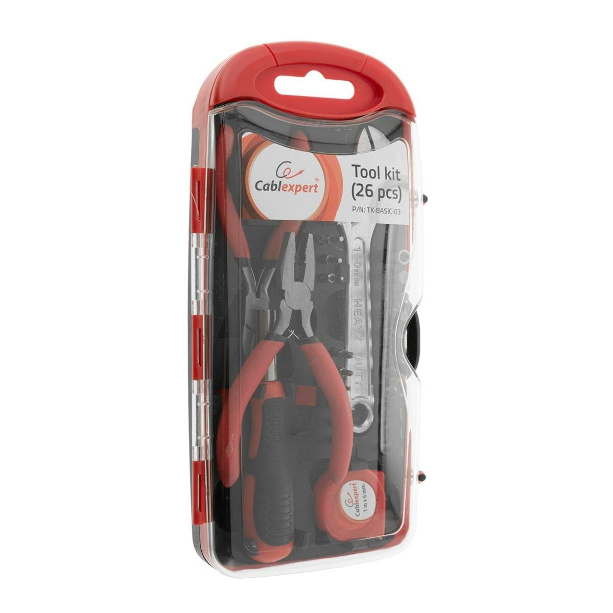 Набор инструментов Cablexpert TK-BASIC-03 отвертка и 20 бит, разводной ключ, плоскогубцы, кусачки, рулетка - 26предметов