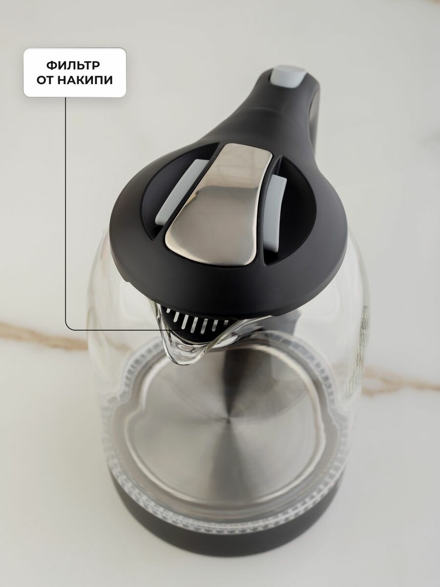 Чайник электрический BBK EK1724G черный, объем 1.7 л, мощность 1850-2200 Вт