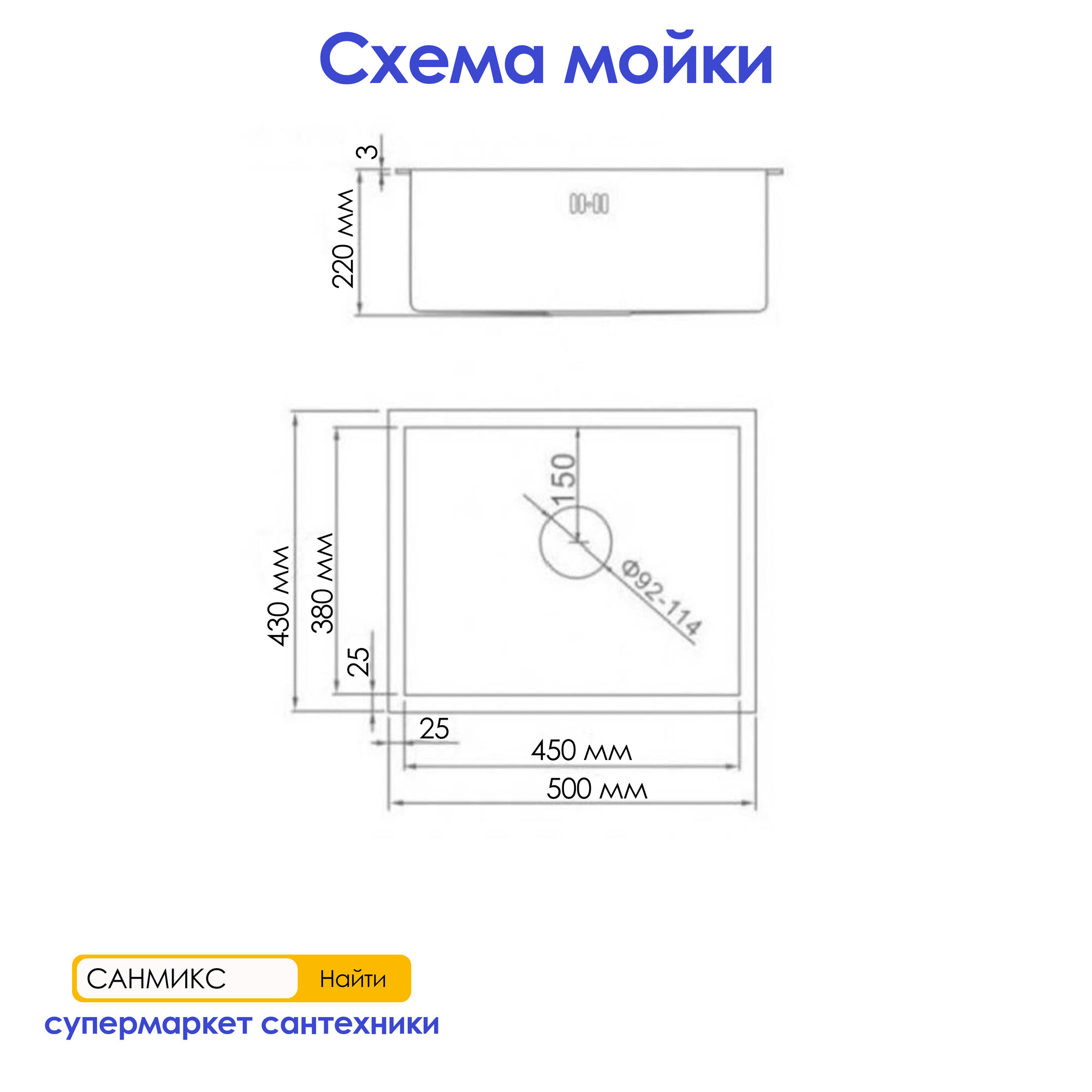 СохранитьМойка кухонная AFLORN AF95043, врезная, S=3,0 и 0,8 мм, 50х43х20 см, сифон, сатин интересное: