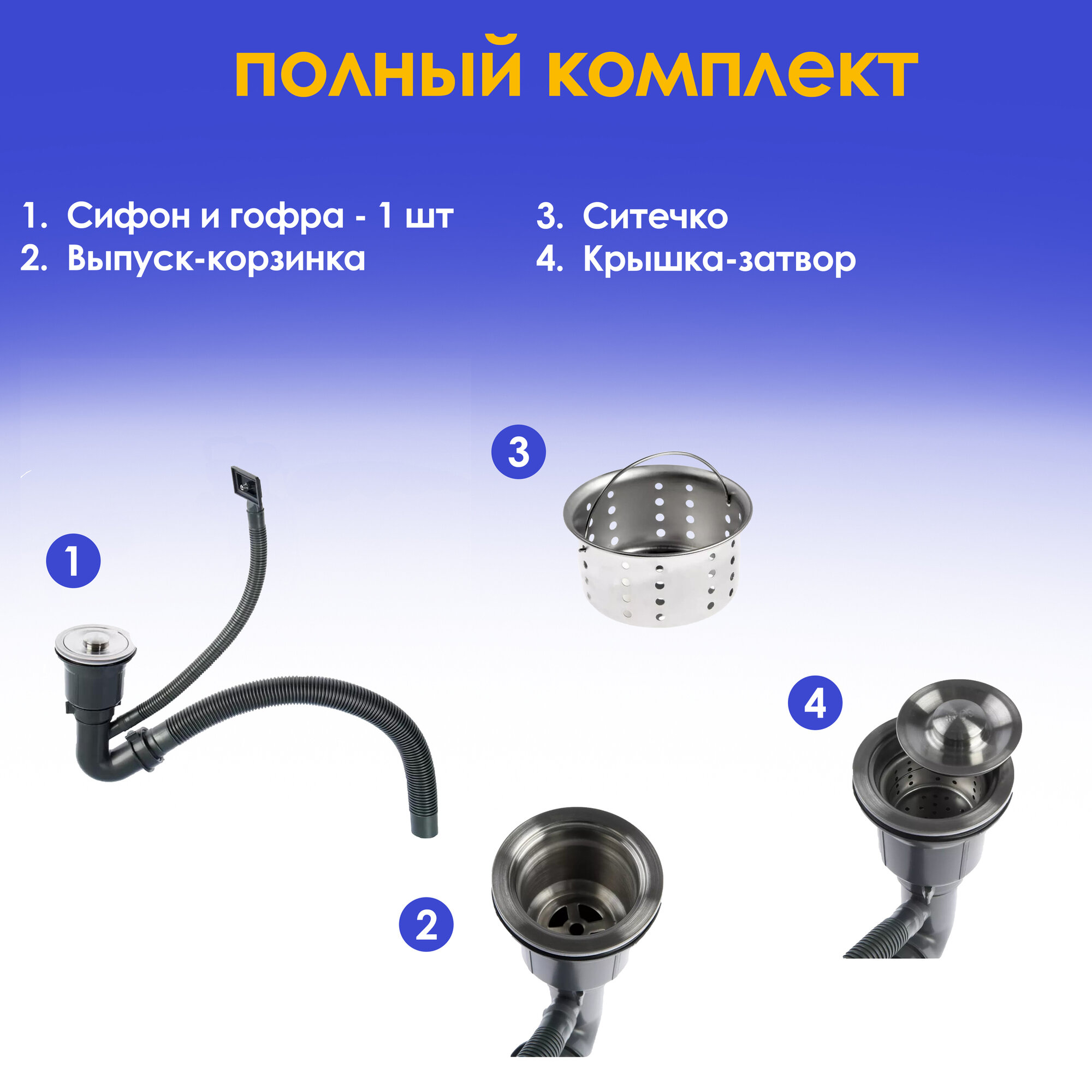 Мойка для кухни Премиум класса 78х43 Сатин, нержавеющая врезная, двухчашевая, 3 мм толщина, выпуск 3 1/2, с сифоном
