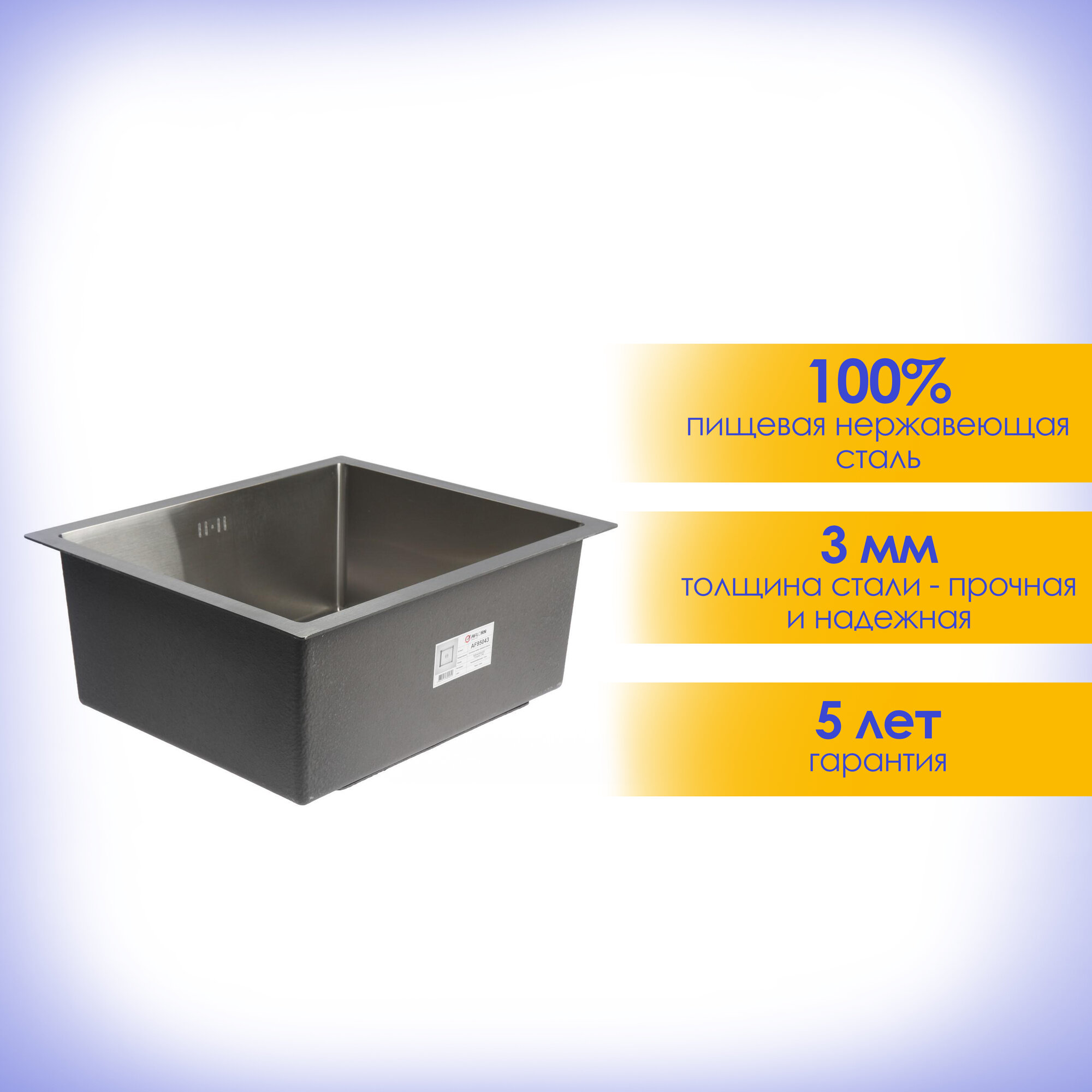 Мойка кухонная врезная из нержавеющей стали AFLORN толщина 3мм. 60х50см. Графит