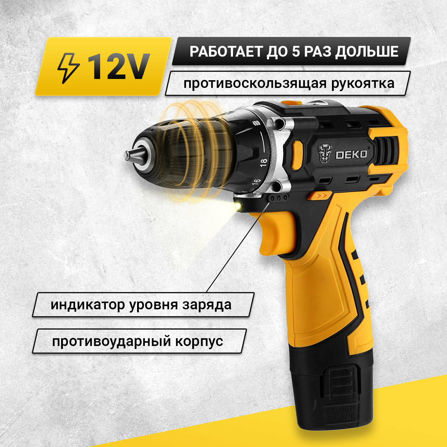 Купить Аккумуляторная дрель-шуруповерт DEKO Banger 12V SET 1 , 26Нм, 1х2.0Ач, з/у (063-4129)