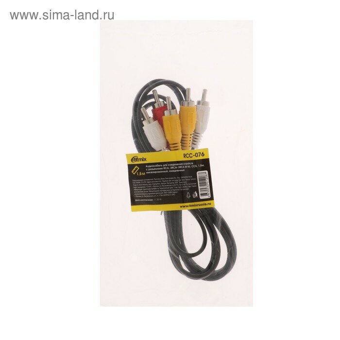 Купить RITMIX Кабель аудио/видео Ritmix RCC-076, 3хRCA(m)-3xRCA(m), 1.5 м, черный