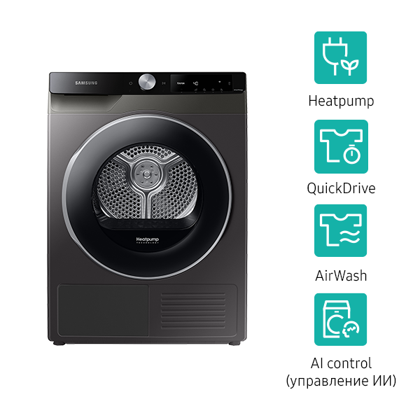 Сушильная машина Samsung DV90T6240L, Инокс интересное: