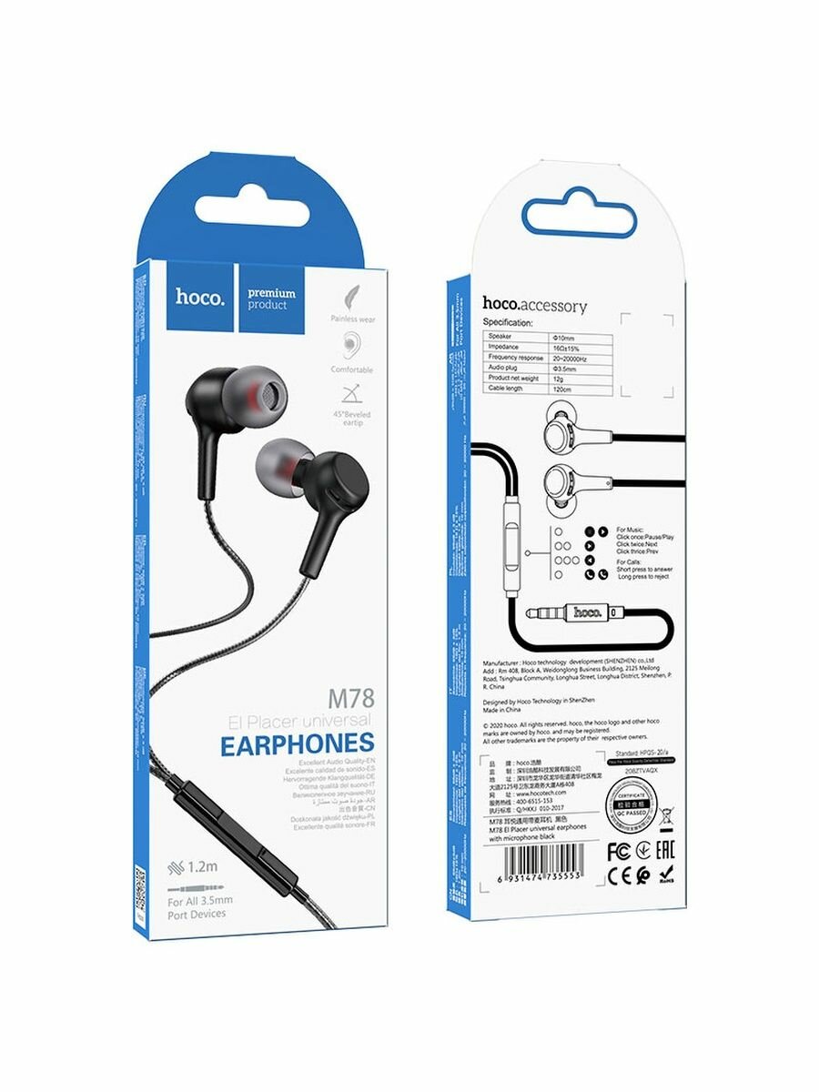 Наушники M78 El Placer universal earphones , HOCO, черные