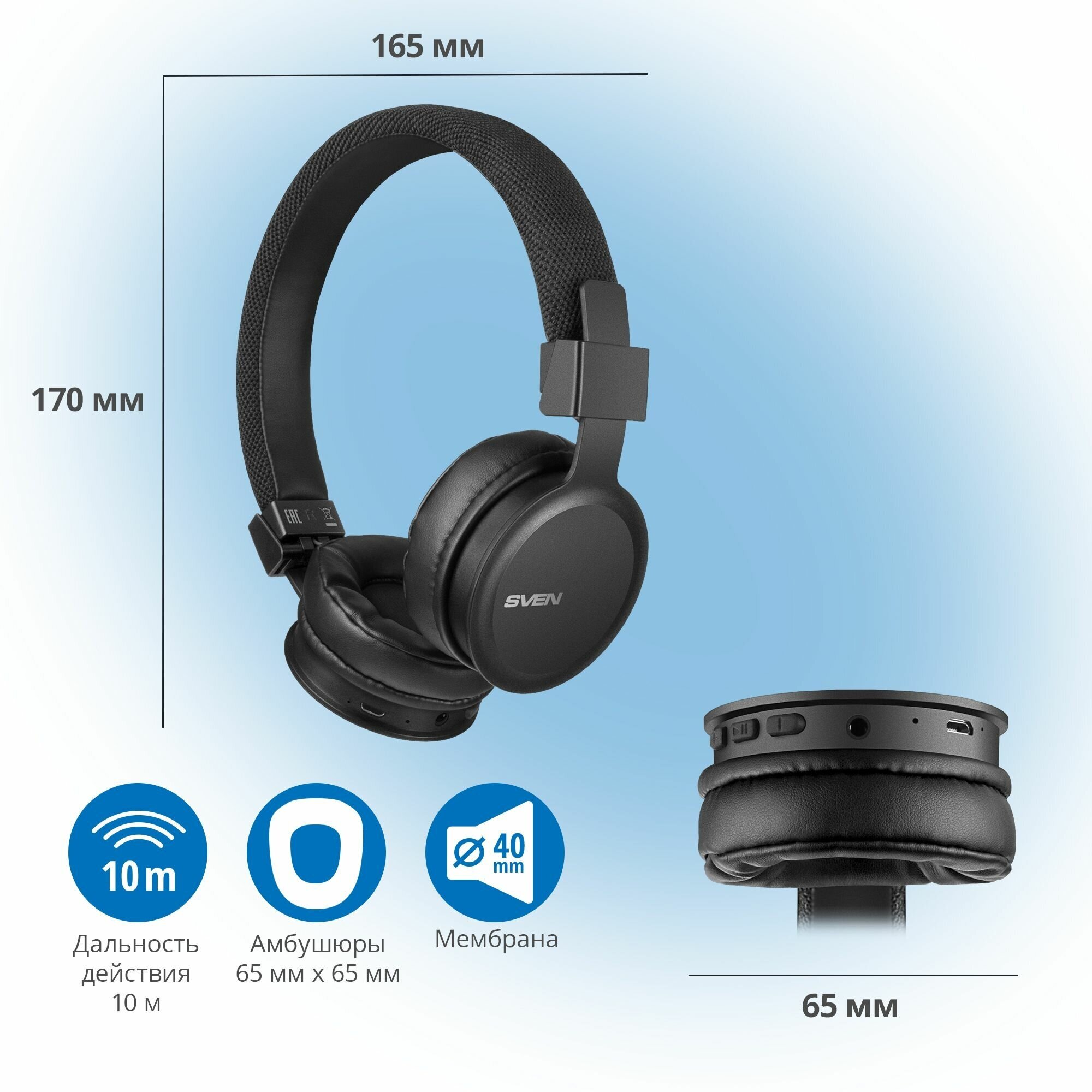 Беспроводные наушники / Беспроводная гарнитура SVEN AP-B700MV черный / Bluetooth