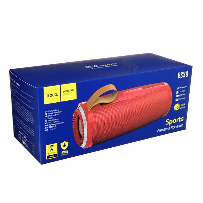 Колонка портативная HOCO,BS38 Cool freedom, пластик, Bluetooth, call, FM, USB, AUX. TF,TWS,красный