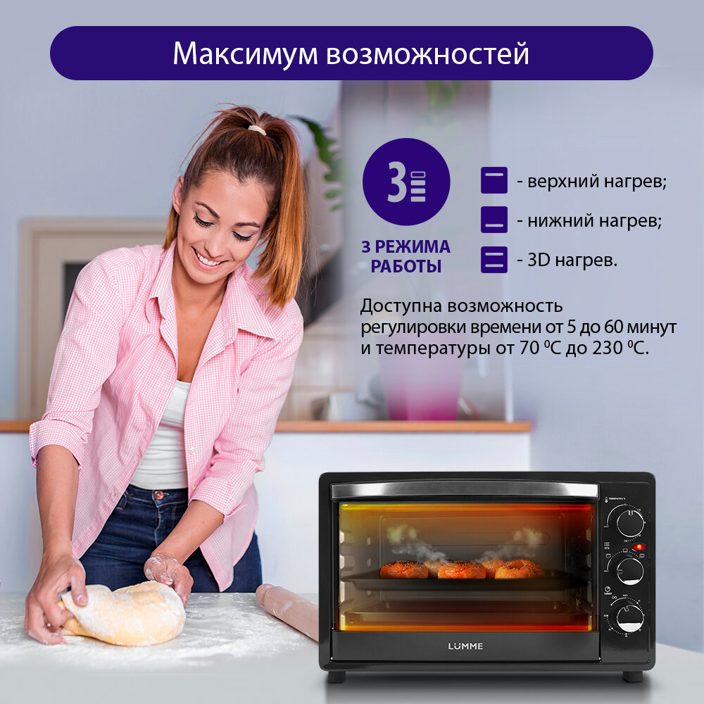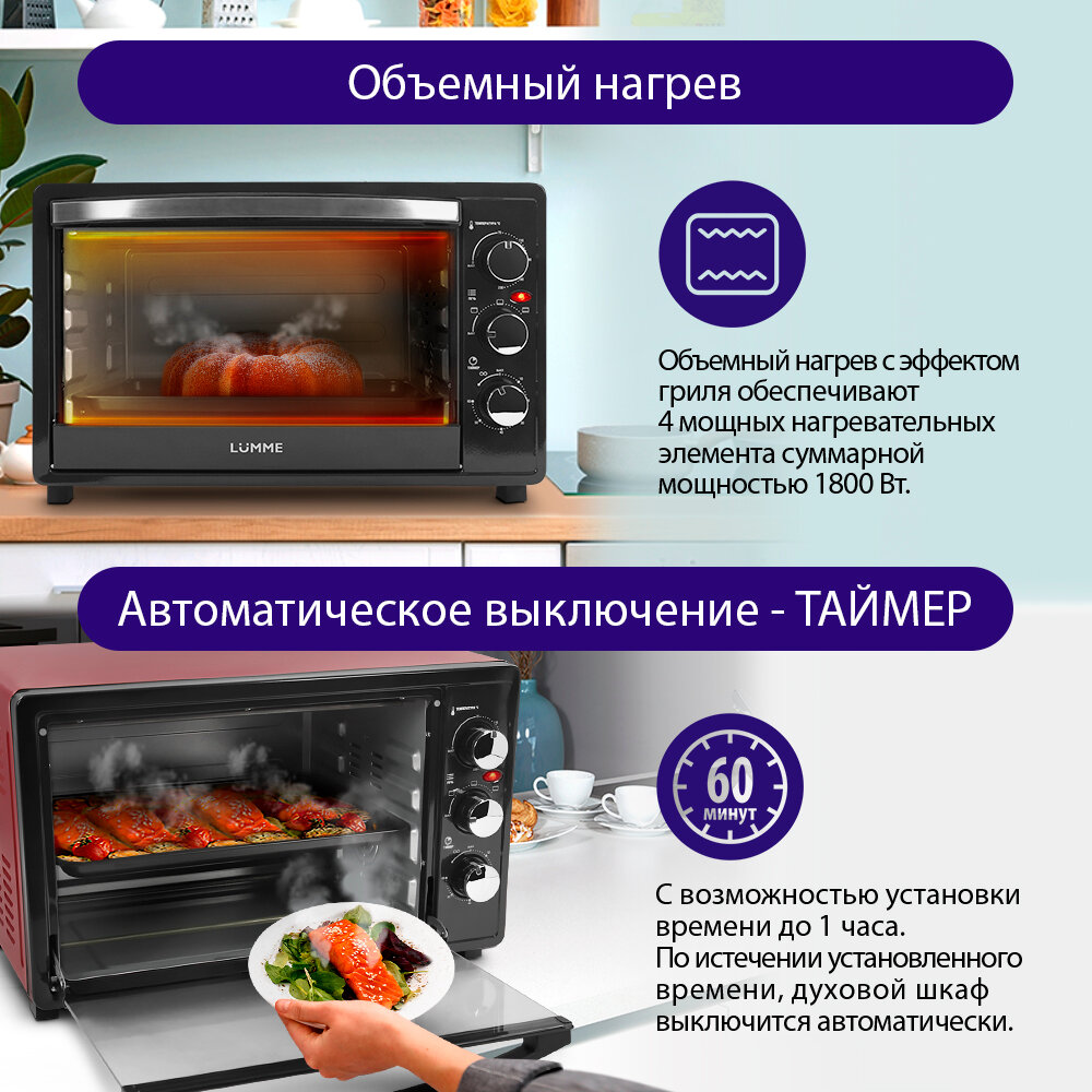 Мини-печь LUMME LU-1706 new черный жемчуг 33литра (гриль)
