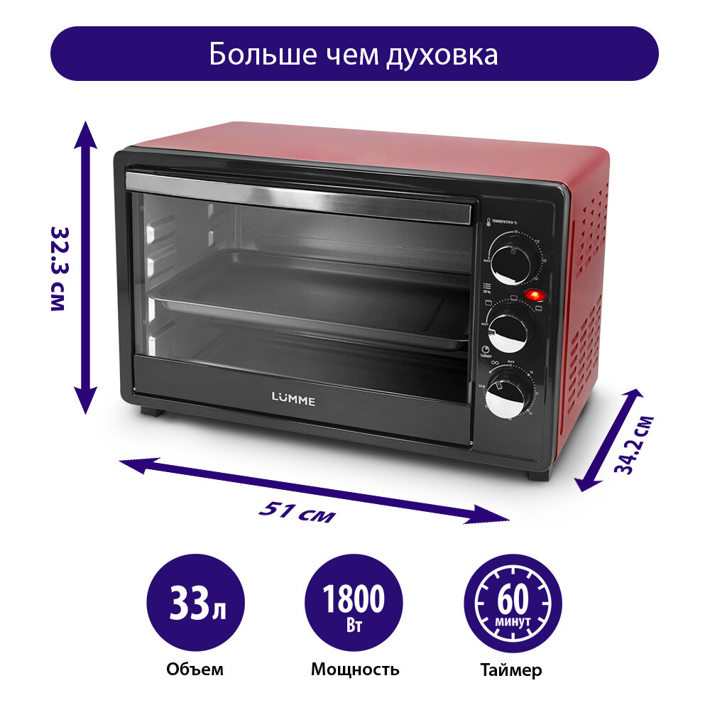 LUMME LU-1706 new красный рубин Мини-печь 33литра (гриль)