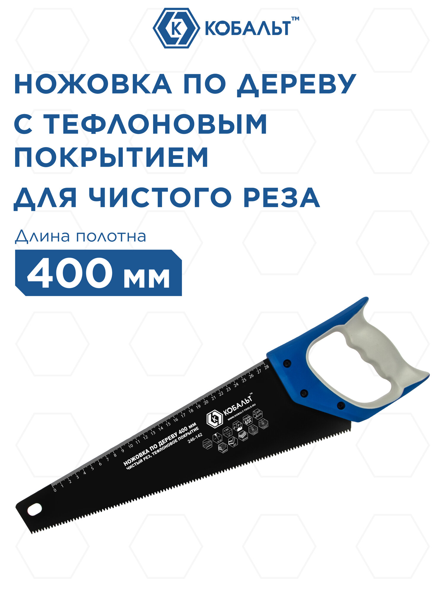 Ножовка кобальт по дереву 400 мм, 7 TPI, тефлоновое покрытие закаленный зуб, 3D-заточка, двухкомпонентная рукоятка 246-142