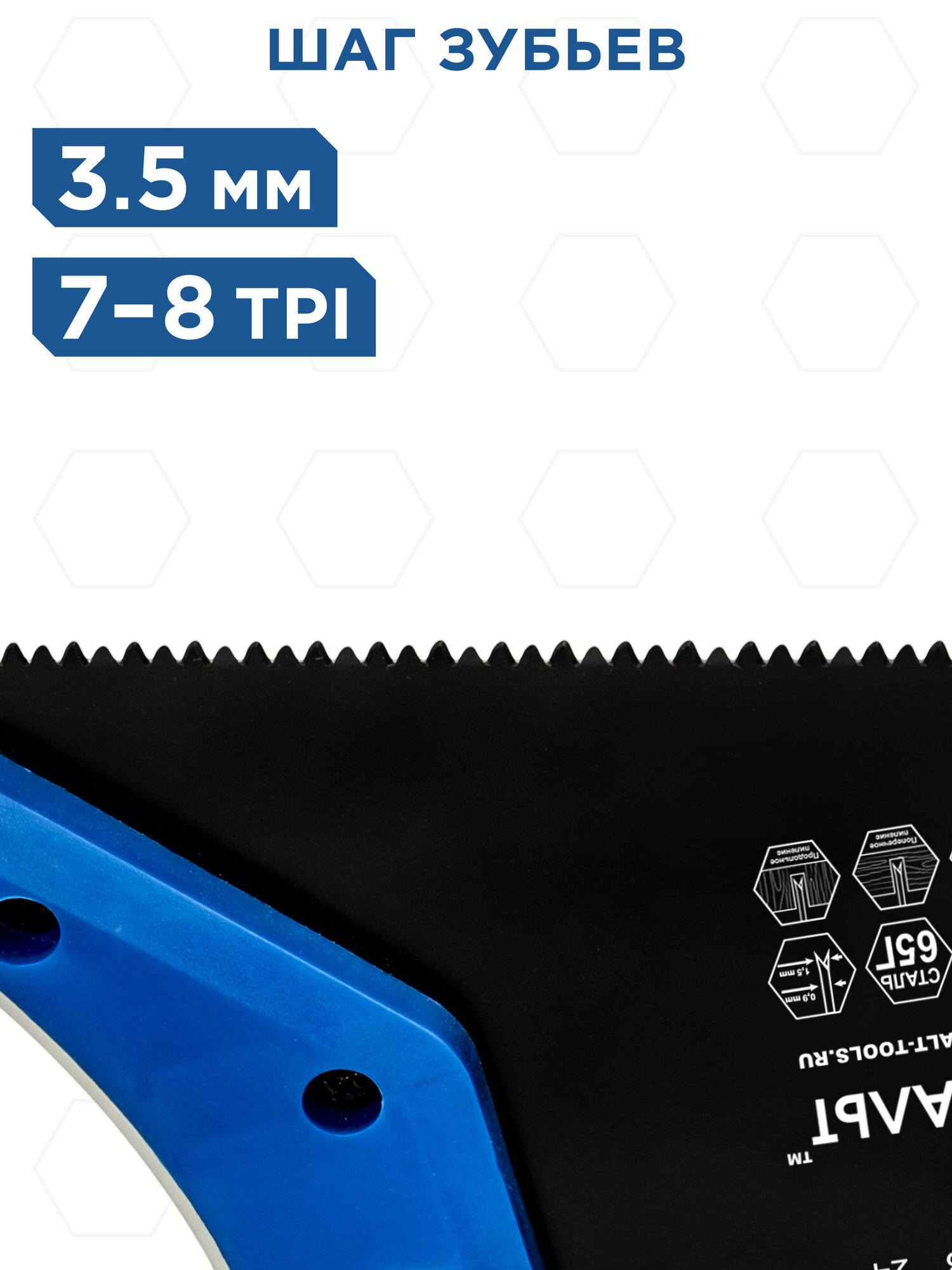 Ножовка по дереву 400 мм, 7 TPI, 3D закаленный зуб, тефлоновое покрытие кобальт 248-795