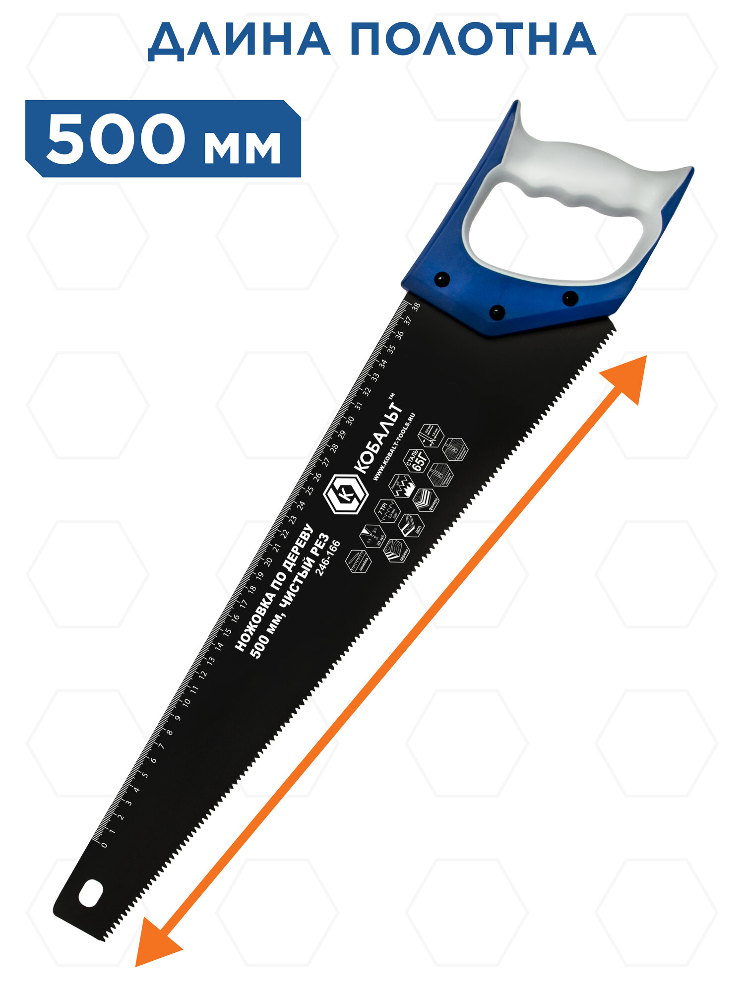Ножовка по дереву 500 мм (7 TPI, тефлоновое покрытие, двухкомпонентная ручка) кобальт 246-166