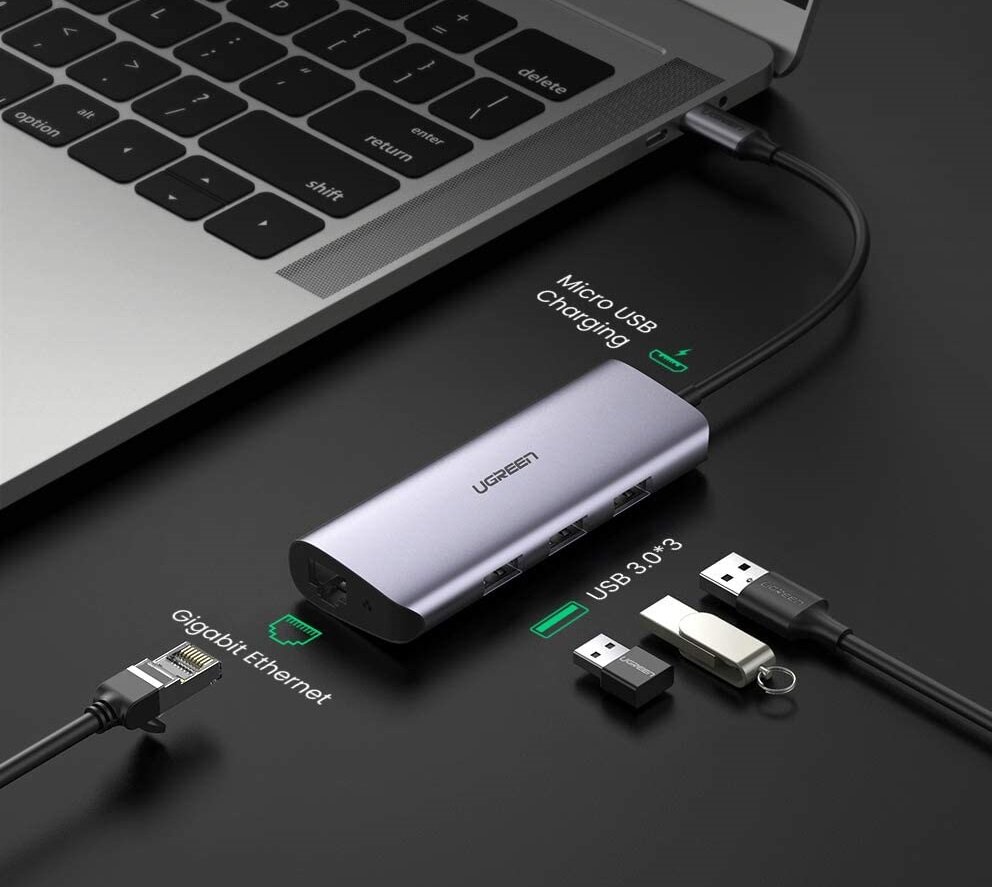 Хаб (разветвитель) UGREEN 4 в 1, 3 x USB 3.0, RJ45, Micro USB