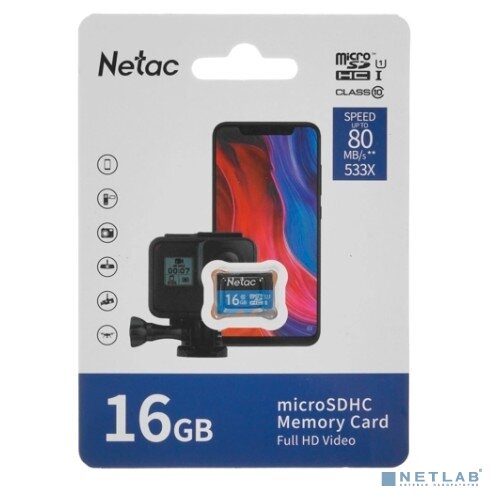 Карта памяти microSDHC UHS-I U1 NETAC P500 16 ГБ, 80 МБ/с, Class 10, NT02P500STN-016G-S, 1 шт.