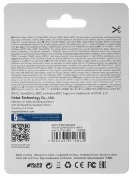 Ниже Вы можете прочитать отзывы на 16Gb - Netac MicroSD P500 Eco Class 10 NT02P500ECO-016G-S (Оригинальная!), ознакомится с подробными характеристиками, посмотреть интересные обзоры и фотографии на 16Gb - Netac MicroSD P500 Eco Class 10 NT02P500ECO-016G-S (Оригинальная!).