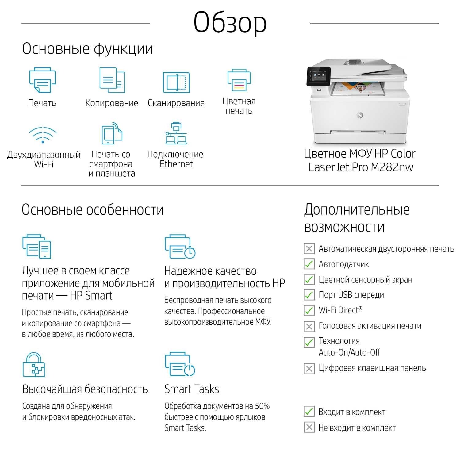 МФУ лазерный HP Color LaserJet Pro M282nw (7KW72A) интересное: